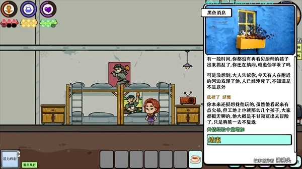 当属性值消耗殆尽后,对应的活动就没办法开展了,因此别只顾着刷某一项属性,要尽可能让各项属性都得到均衡发展。