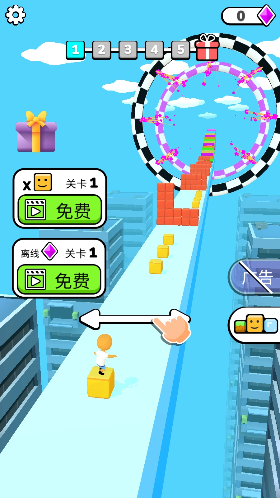 途中要获得更多的方块提升高度从而通过路上的障碍
