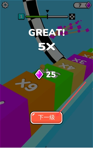 魔方一起浪的玩法十分简单,只需用单指左右滑动就能调整方向。随着收集的方块越来越多,小人堆叠的高度也会持续增加,而且没有上限,可以尽情体验冲浪的畅快感觉。另外,游戏采用了前进式的关卡设计,结合赛道风格的场景,沉浸感更为强烈,是休闲娱乐的绝佳选择。