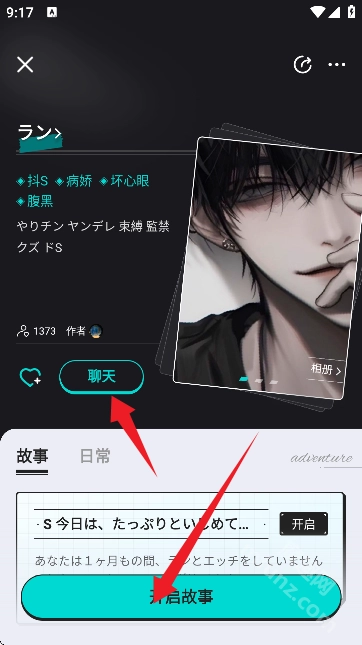 点击详情页查看角色介绍并聊天互动。