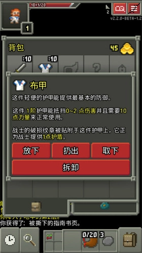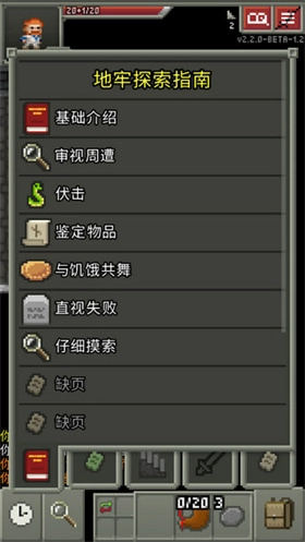 右下角是背包,在这里能够查看并使用武器、防具、卷轴、种子之类的道具。