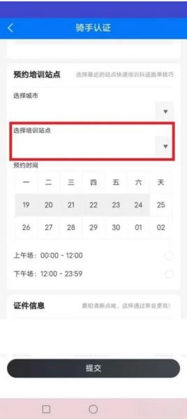 打开抖送骑士版应用程序,在骑手注册界面中找到并选择培训地点的预约功能。