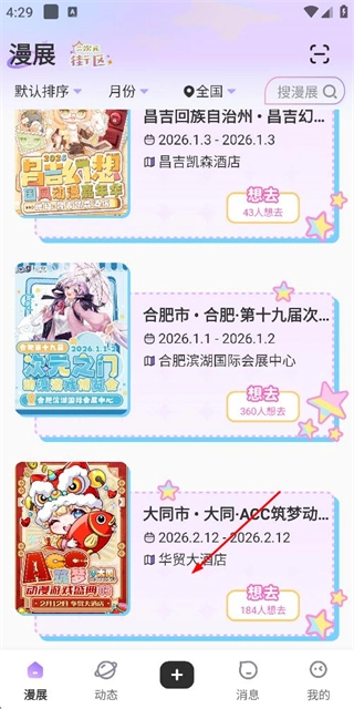 在漫展列表页面中找到目标漫展的条目并点击,即可进入该漫展的详情页面。