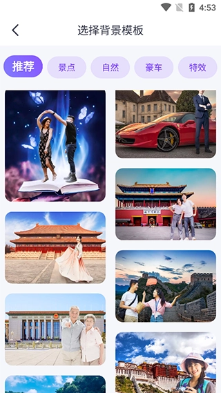 4、最具亮点的功能是更换背景,提供多个主题模块供你自由挑选。
