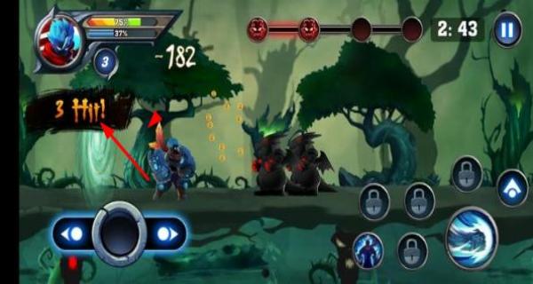 2、进入对战界面后,可以选择剧情关卡或竞技模式。通过滑动屏幕来控制角色的移动,并点击技能按钮来释放组合技能,例如使用刺客的“影袭+瞬移斩”连招来压制对手。