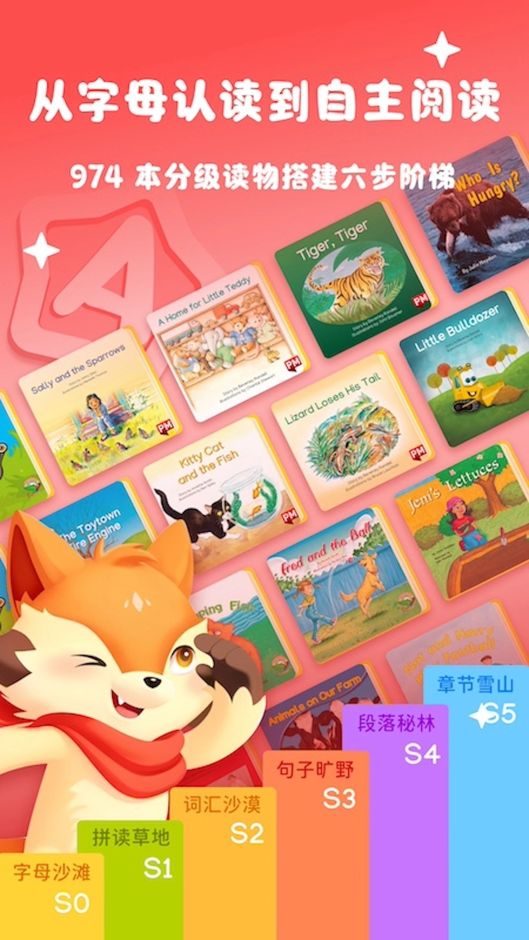 科学分级体系:把974本读物分为6个主要学习阶段,每个阶段都设定了清晰的目标,像第一阶段集中于字母认读,第三阶段着重巩固自然拼读,以此保证学习过程能够逐步推进。