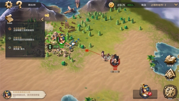 你能够指挥军队在地图上不受限制地移动,同时利用各种远程武器对敌方据点或文明展开围攻,进行多线作战。