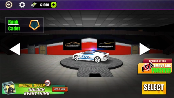 游戏提供多种类型的警车供玩家选择与解锁,涵盖从经典巡逻车到现代警用SUV,满足不同玩家的驾驶需求。