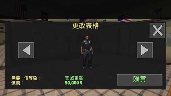 玩家点击改变统一下方的即可进入商店,可以购买警棍、摄像头、防弹衣等物品。