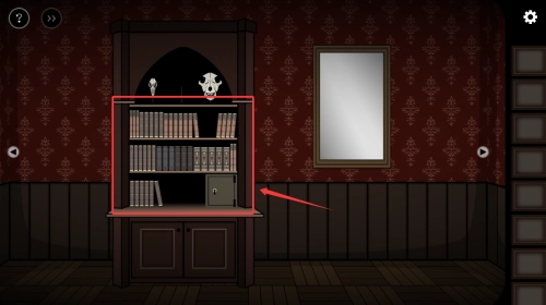 3、按照红框箭头提示,向右移动书架寻找通道。