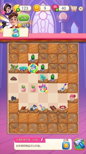 1、点击两个相同的道具图标进行合并,即可得到更高级的物品。