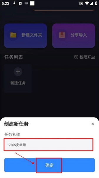 5.输入任务名称后点击确定