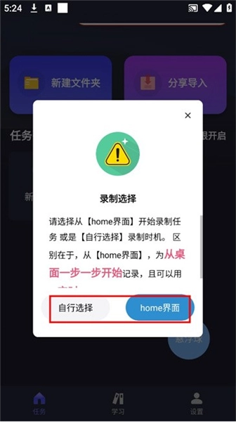 6.支持“自定义选择”录制时机,也可以从“home界面”启动录制任务