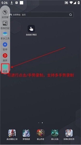 7.此处以home界面为例,回到主页面启动录制,录制结束后点击“完成”按钮