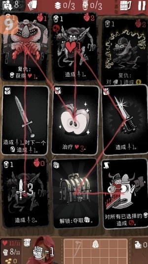 2、每个回合都得至少选2张牌,点击这些牌来构建一条路径。