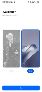 进入后,可选择保留当前壁纸或使用推荐的壁纸,随后点击确认按钮。