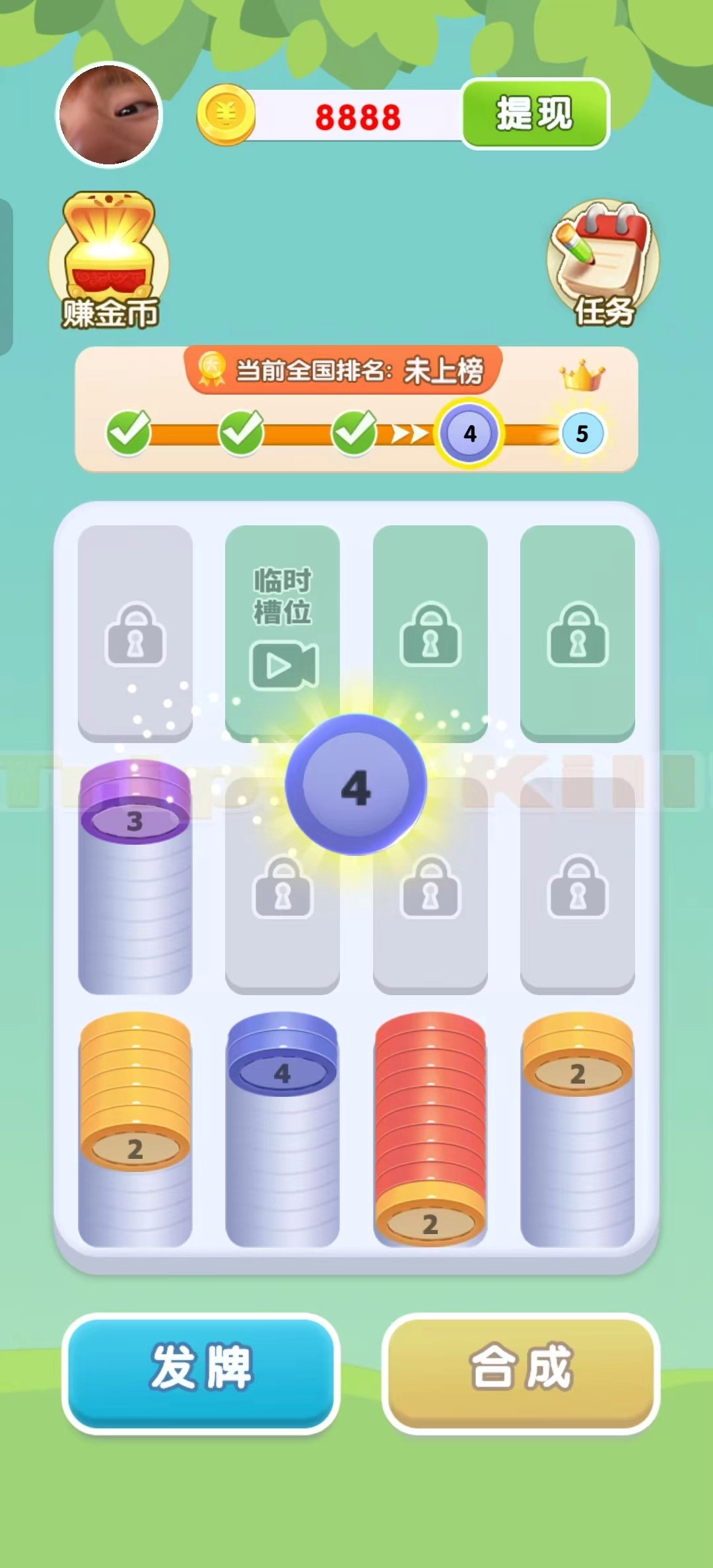 1、合成不同的硬币,相同颜色就可以合成更高的数字