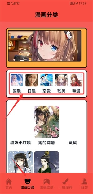 3、进入漫画分类页面,可按国漫、日漫等标签筛选感兴趣的内容