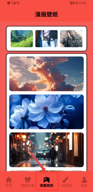 4、切换至漫画壁纸专区,可浏览不同风格壁纸并使用