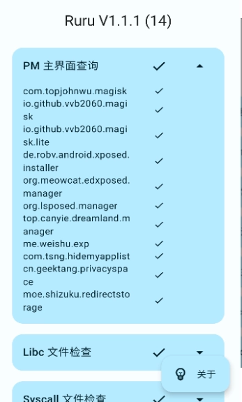 ruru环境检测是一款功能十分强大的检测工具,通过它你可以查询PM命令、检查Libc文件与Syscall文件,还能自动查找手机里的可疑文件和病毒文件,切实保护手机安全。简洁的操作界面让它更具优势,借助它能直观了解手机是否被root、是否存在其他安全隐患,使用起来极为便捷!
