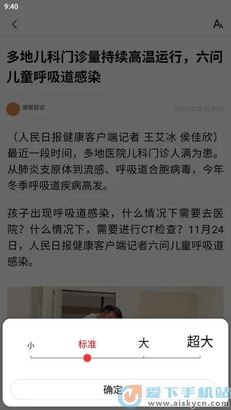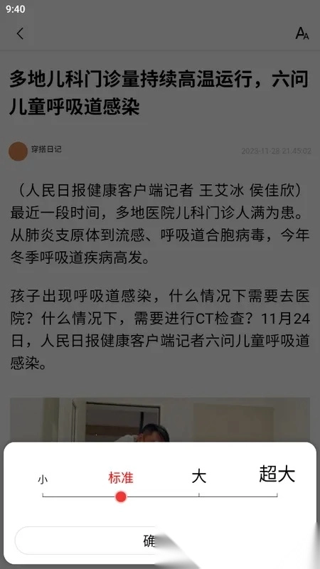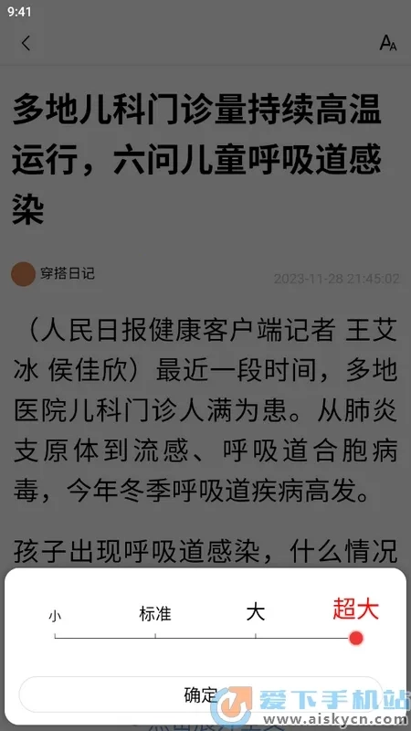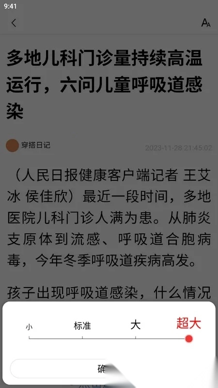 字体大小支持调节,通过左右滑动调节按钮,能实时预览效果,可一直调整到满意。