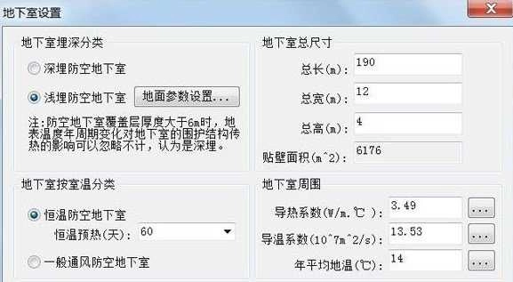 地下室计算模型的构建,主要依据《人民防空地下室设计规范》与《防空地下室设计手册》里的相关计算理论及算法。该模型可支持深埋、浅埋地下室的计算,同时也能满足恒温防空地下室和常规通风防空地下室的计算需求。