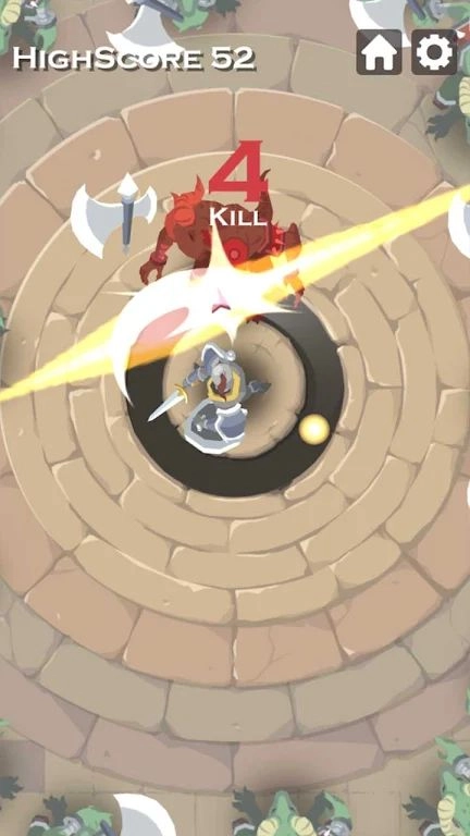 角斗士轮盘是一款采用圆盘竞技玩法的俯视角动作游戏,玩家将操控角斗士投身战斗,通过精准把握时机与快速反应来战胜敌人。你需要瞄准来自四面八方的怪物,利用手中的大剑精准劈砍,体验惊心动魄的爽快战斗与充满冲击力的瞬间。游戏操作简单,只需点击屏幕即可发起攻击,帮助你在最恰当的时机展开对决。
