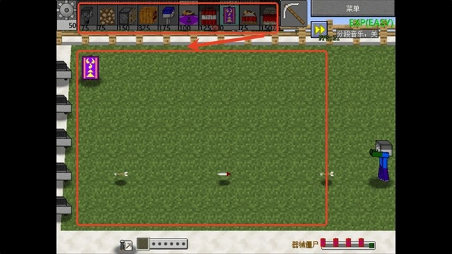 1、选择左上角的器械卡牌,再点击草坪即可放置器械;