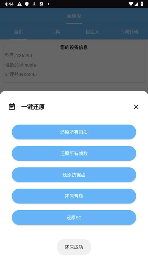 3、选择完毕后修改就成功了,之后重启游戏就能完成整个修改流程;要是想恢复原来的设置,在软件首页点击还原按钮就行。