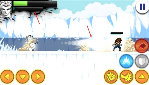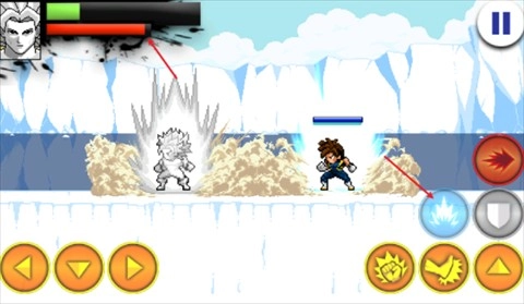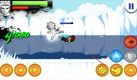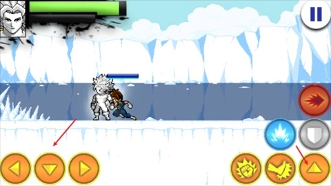 1、进入战斗状态后,通过左侧方向键来操控角色移动,右侧的上方向键负责实现跳跃动作。