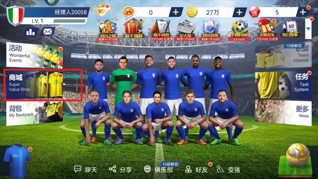 2、参与游戏内的赛事,通过招募各类角色来提高球队等级