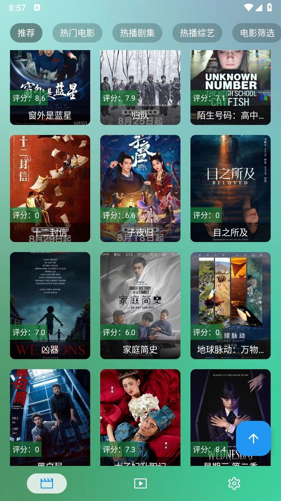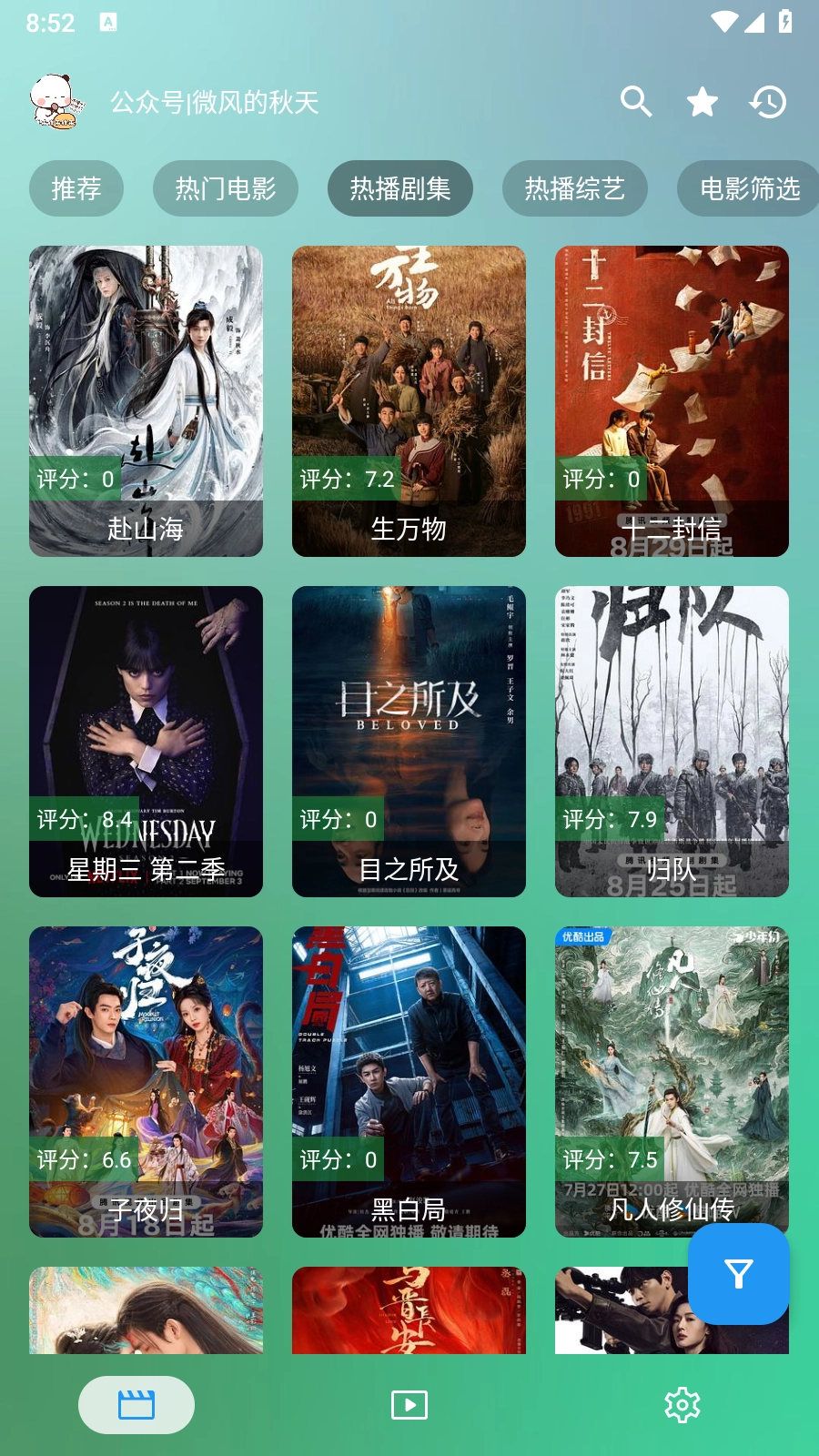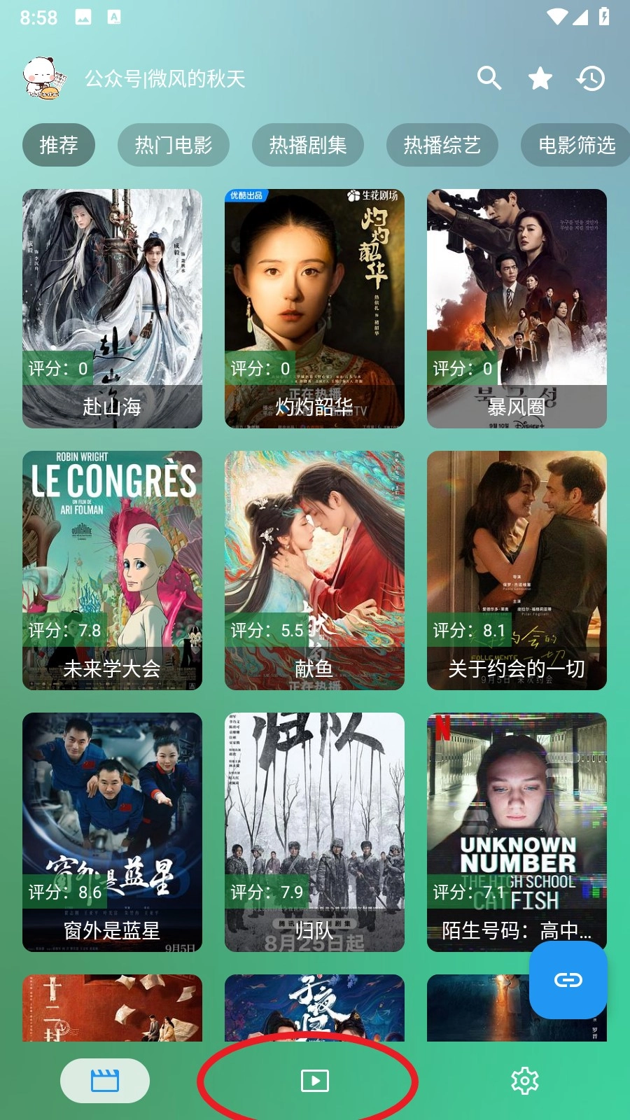 1. 启动幸福年年影视App,点击页面底部导航栏正中间的按钮
