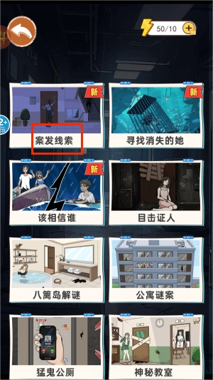 2. 在模式选择页面上,“案发线索”选项配有放大镜图标,选中该选项后,会播放一段简短的案件背景介绍动画。