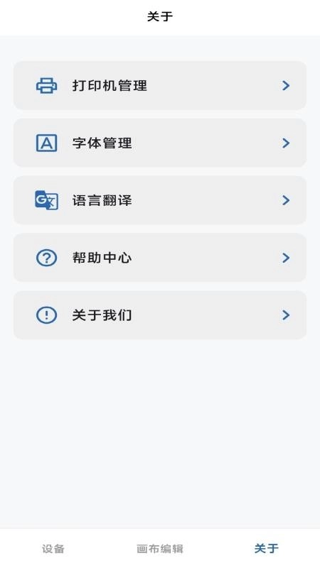 接下来在“关于”功能菜单界面,点击“语言翻译”功能按键以进入相应页面。