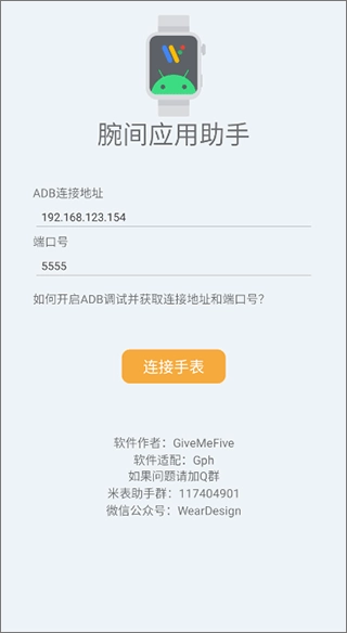 3、在获取到手表的ADB链接地址后,打开对应软件并将该地址填入指定位置,随后点击“连接手表”按钮;