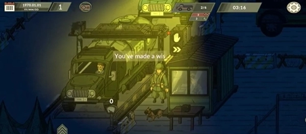 3、游戏采用2D卡通画风,以灰暗色调营造冷战时期边境车站的压抑感,同时通过细腻的人物设计(如表情、动作)和场景细节(如检查站布局、车辆结构)增强视觉沉浸感。