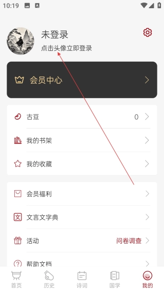 是一款专注中国历史文化传承的沉浸式学习平台,致力于以系统化内容与创新交互形式,让用户深入领略五千年文明的魅力。它涵盖历史朝代、国学经典、重大事件、诗词歌赋、神话故事等多元模块,通过时间轴、地图、关系图谱等工具立体呈现历史脉络,的纯净界面搭配丰富资源,助力用户轻松学习历史知识、探索文明奥秘。1、打开中华历史,点击【我的】。