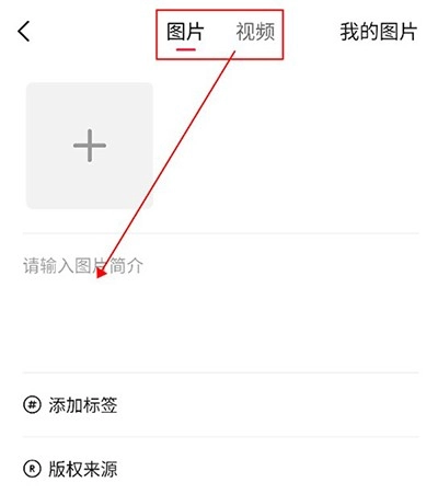 3、最后填写好图片或视频的内容描述以及标签或来源,点击右上角的“发布”按钮即可