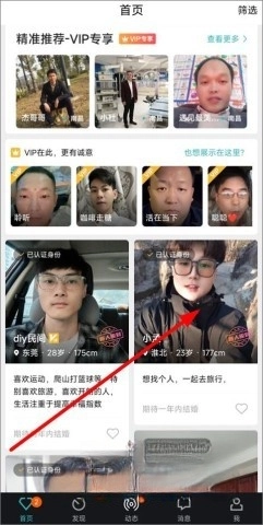 启动程序后登录账号进入首页,浏览同城异性的相关资料,随后点击进入异性展示页面。