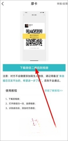 把微信二维码保存到相册,然后打开微信的扫一扫功能,从相册里选中刚才存的二维码,识别通过后就能添加对方为微信好友了,别忘了备注“来自婚恋交友平台,期待更深入的沟通”。