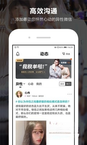 高效沟通,轻松添加异性的微信,怦然心动及时传达。