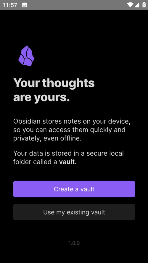 单击【Create new vault】按钮来创建一个新的库,这个库也就是Obsidian笔记的存储目录,之后我们会把它设置为云同步状态。