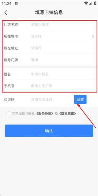 在注册账号的页面填写好相关信息后,点击“获取”按钮来获取验证码。