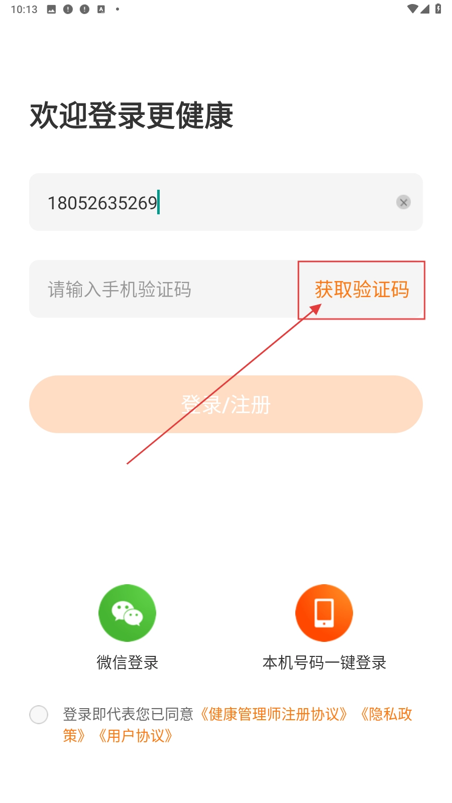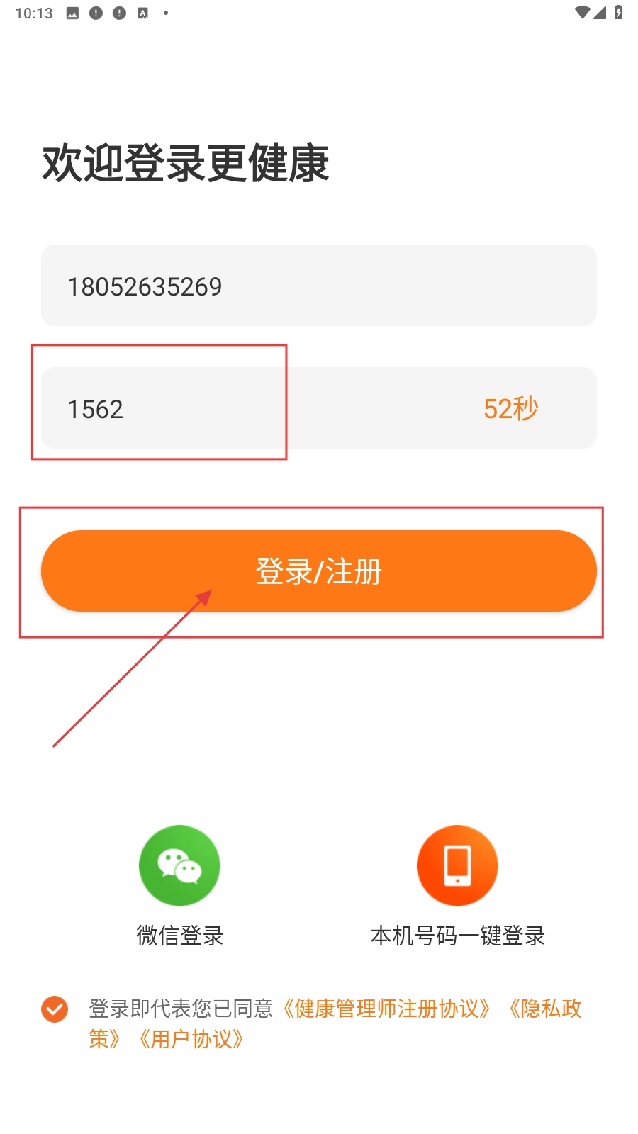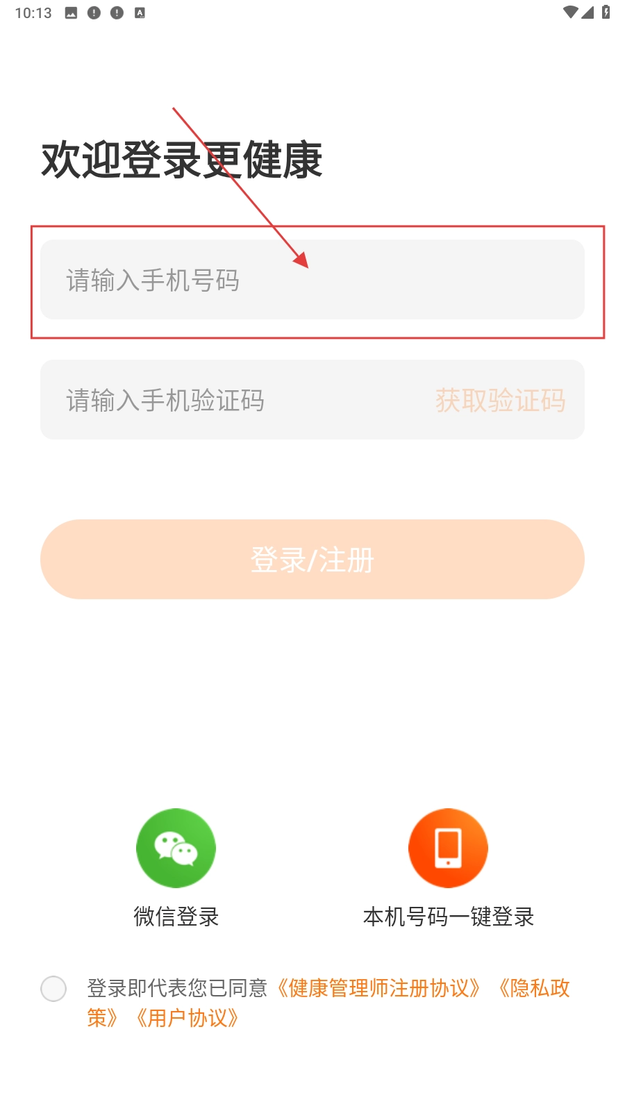 打开应用,填写手机号。