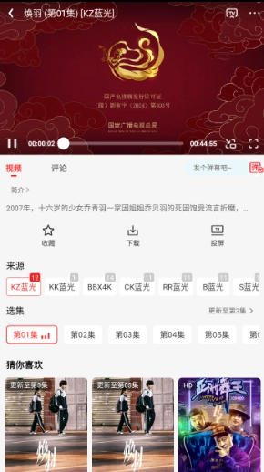 3、任意播放一部剧集内容,这里以“焕羽”为例