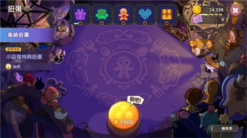 每个饼干角色都拥有专属技能,随着冒险进程的推进或在商城购买资源,就能通过扭蛋掷骰子的方式获取(装饰、城宝居民和道具也都混在这个大卡池里哦XD)