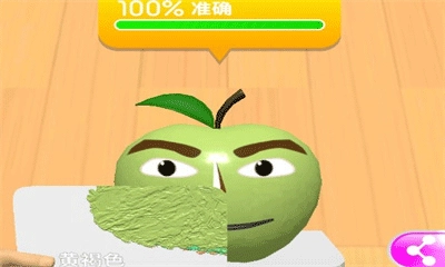 依次点击橙红色、纯黄、纯黄、宝石碧绿、浅鲑鱼肉色、宝石碧绿这几种颜色,就可以合成出100%黄褐色的青苹果了。