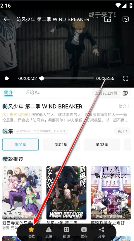 2、进入动漫播放页面,点击箭头所指的收藏图标