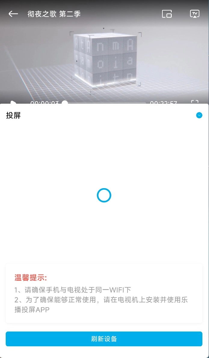3、进入播放界面后,点击右上角的TV按钮,系统便会开始搜索可投屏的设备