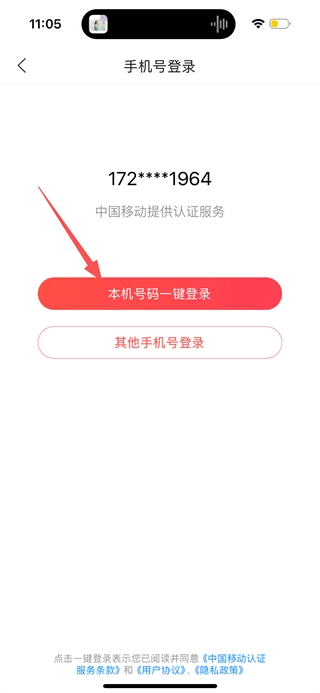 在手机号登录界面,点击“本机号码一键登录”按钮,即可完成账号登录操作。